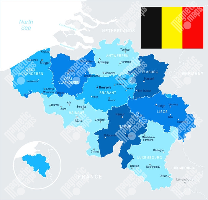 Carte magnétique de Belgique, illustré, bleu