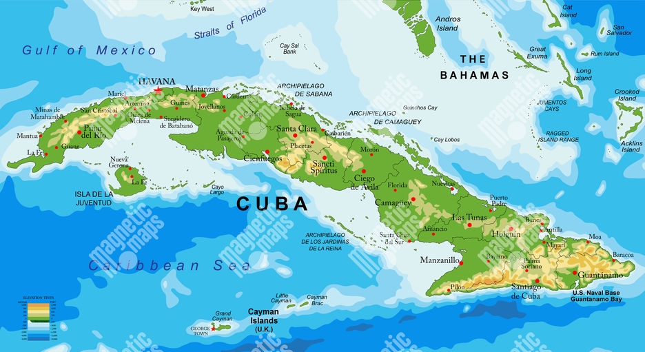 Carte magnétique de Cuba, géographique, en relief