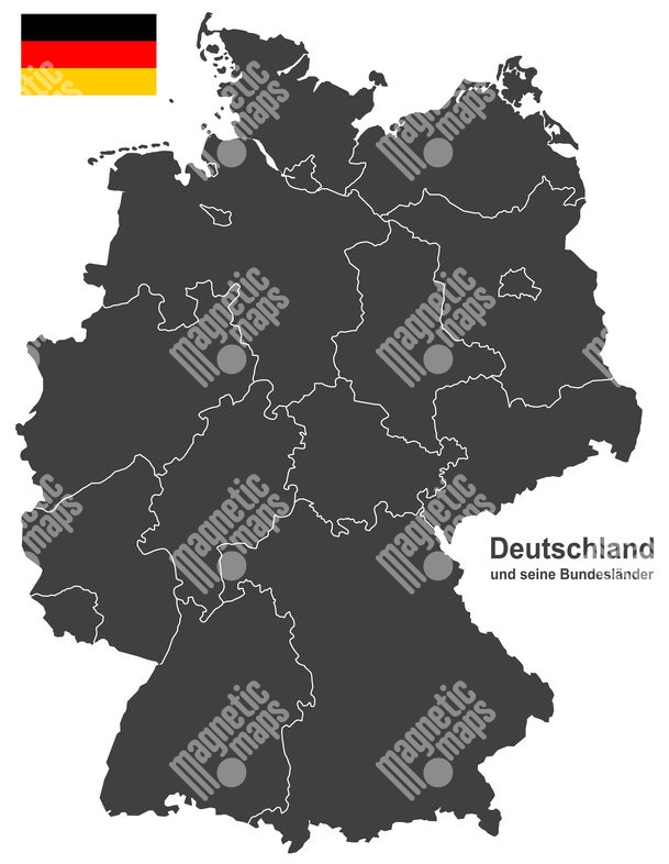 Carte magnétique de l'Allemagne, illustré, gris