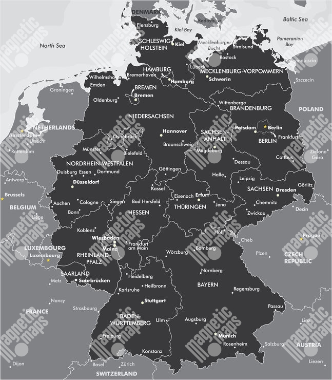 Carte magnétique de l'Allemagne, illustré, noir et blanc