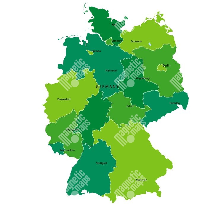 Carte magnétique de l'Allemagne, illustré, vert