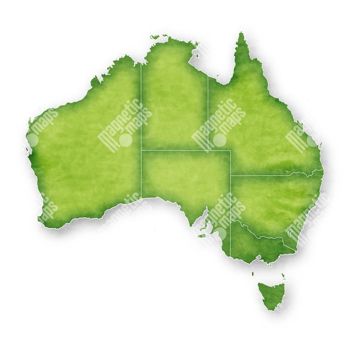 Carte magnétique de l'Australie, illustré, vert