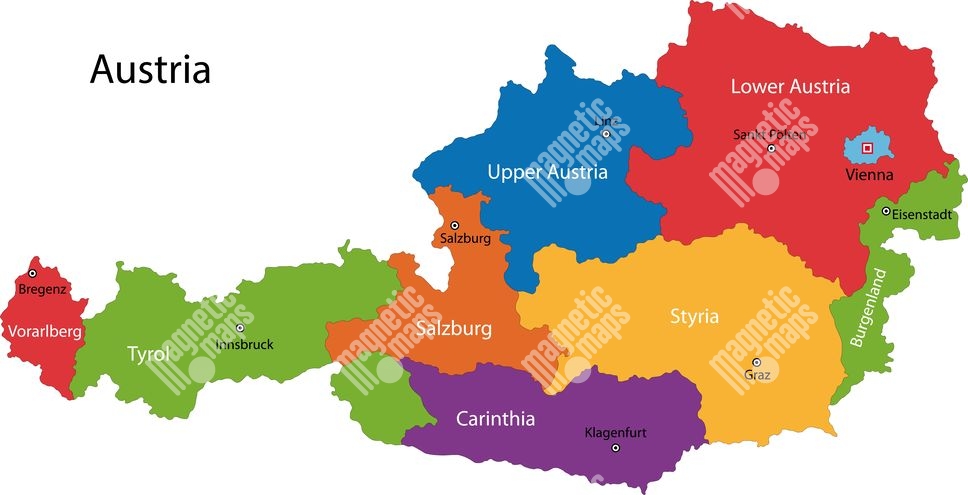 Carte magnétique de l'Autriche, illustré, COLOREE