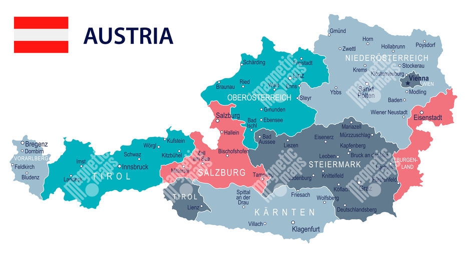 Carte magnétique de l'Autriche, illustré, COLOREE