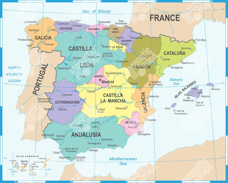 Carte magnétique de l'Espagne, illustré, COLOREE