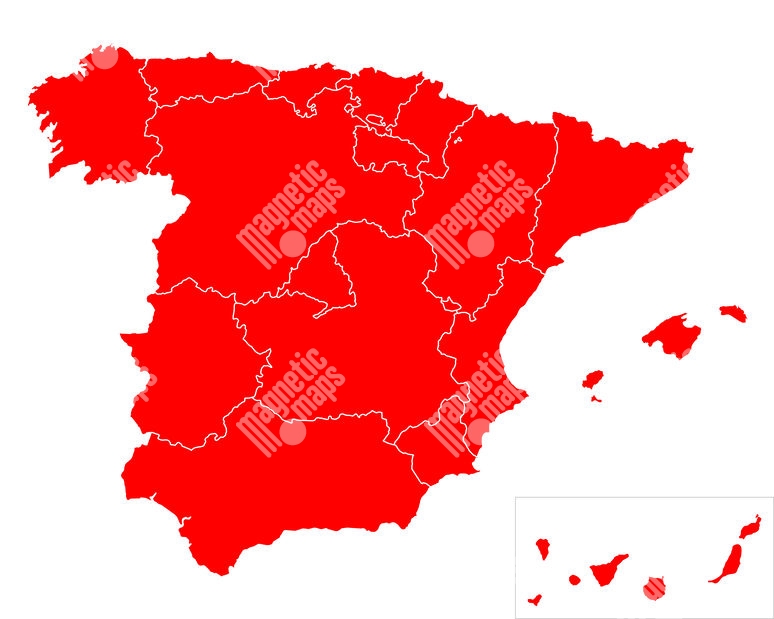 Carte magnétique de l'Espagne, illustré, rouge