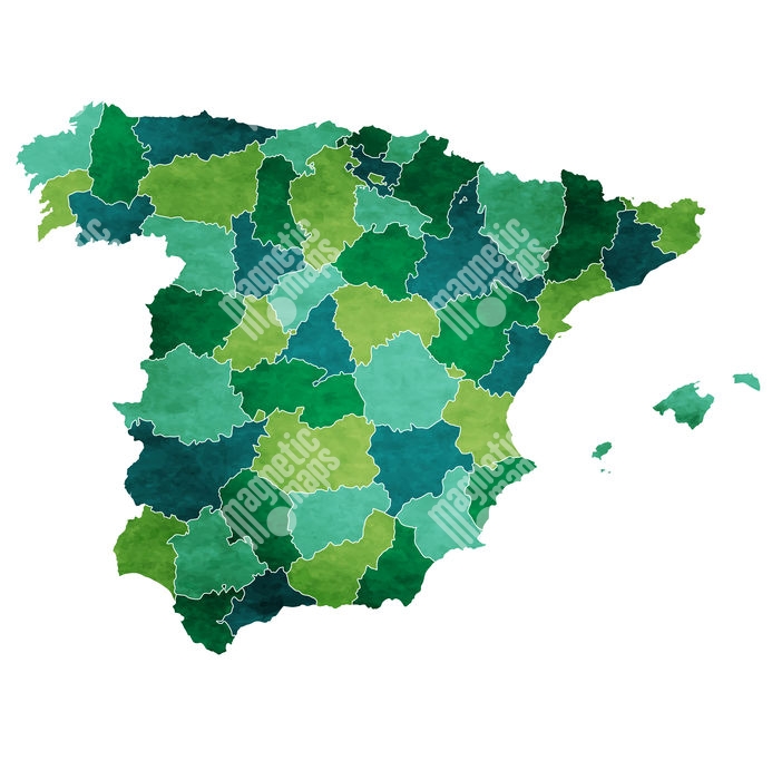 Carte magnétique de l'Espagne, illustré, vert-bleu