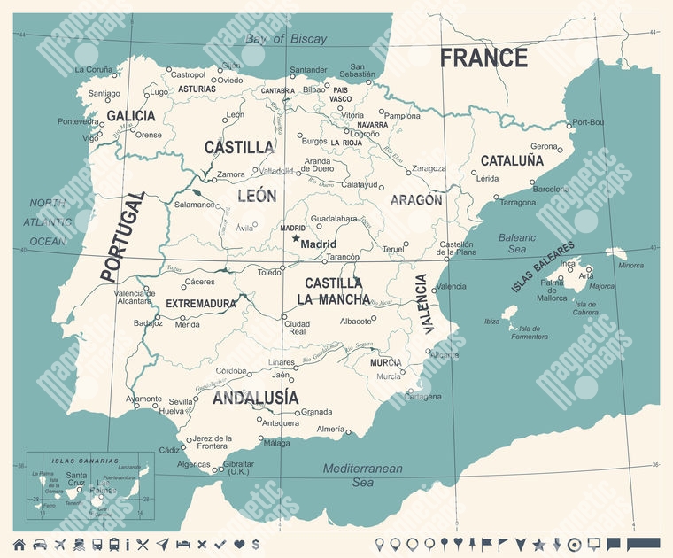 Carte magnétique de l'Espagne, vintage, COLOREE