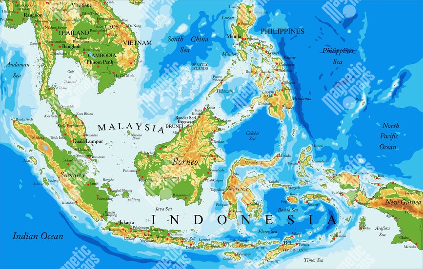 Carte magnétique de l'Indonésie, géographique, COLOREE