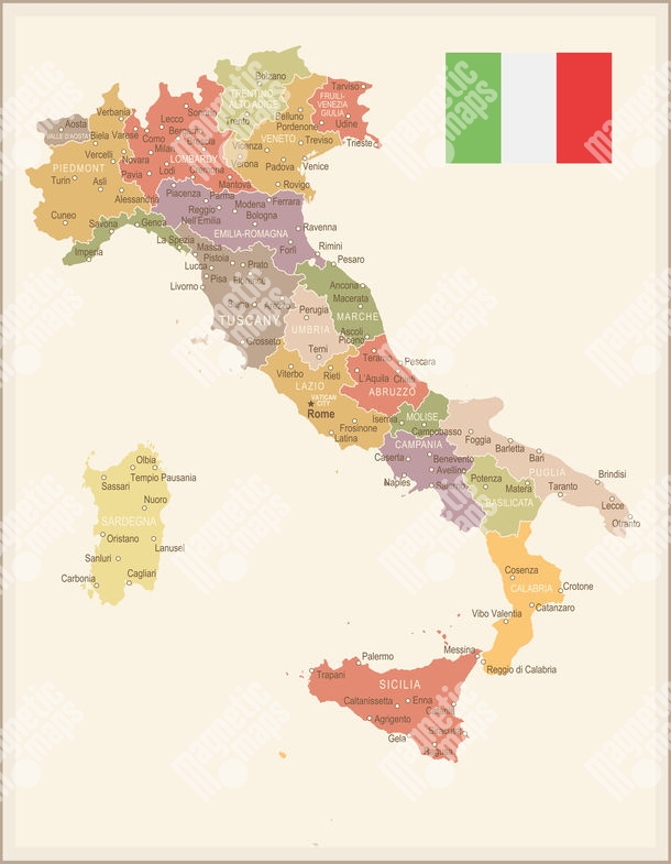Carte magnétique de l'Italie, illustré, COLOREE