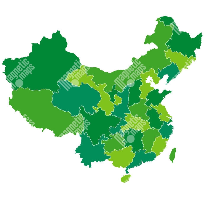 Carte magnétique de la Chine, illustré, vert