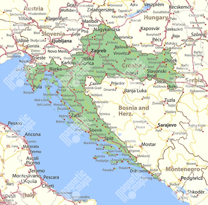 Carte magnétique de la Croatie, DETAILLEE, COLOREE
