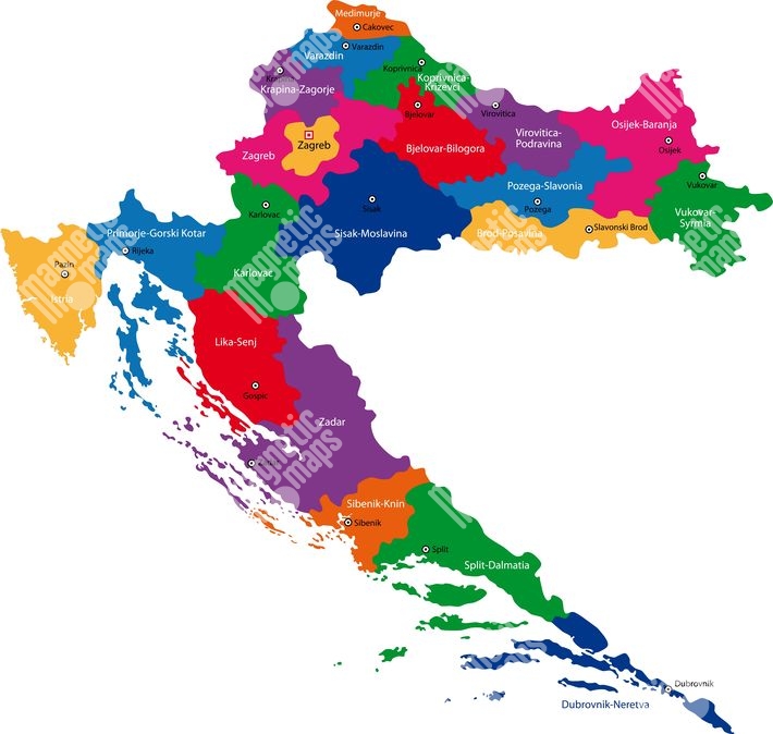 Carte magnétique de la Croatie, illustré, COLOREE
