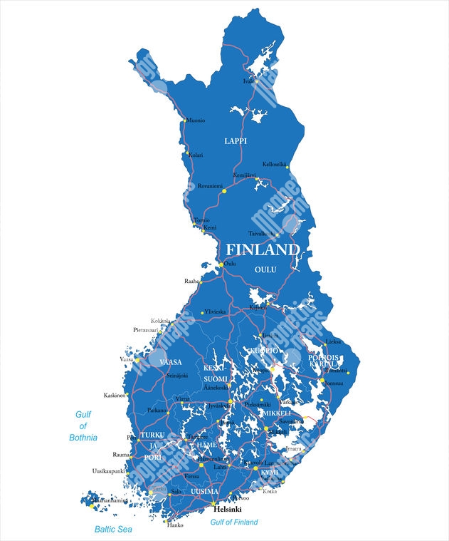 Carte magnétique de la Finlande, administrative, bleu
