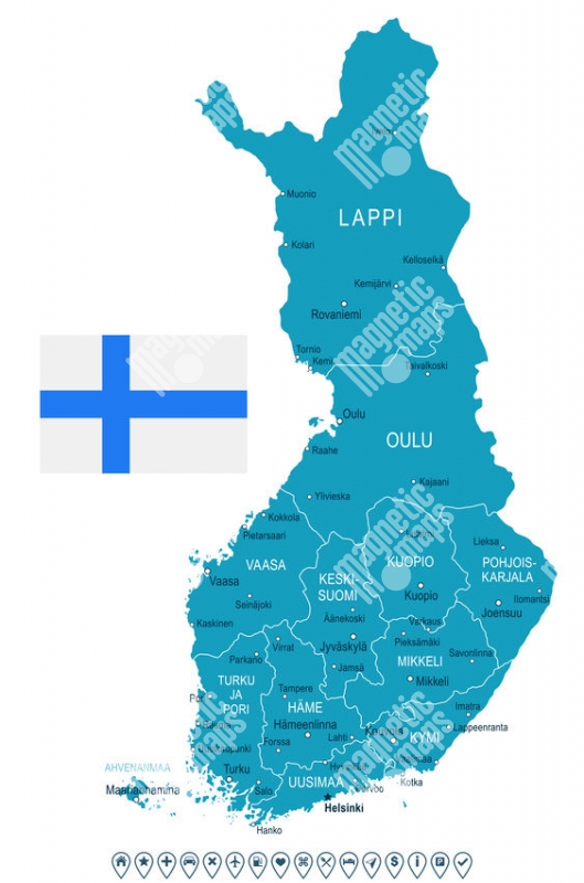 Carte magnétique de la Finlande, illustré, bleu