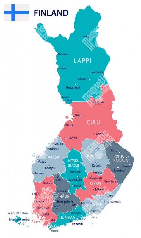 Carte magnétique de la Finlande, illustré, COLOREE