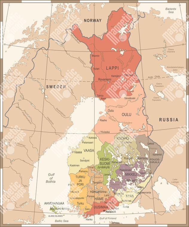 Carte magnétique de la Finlande, vintage, COLOREE