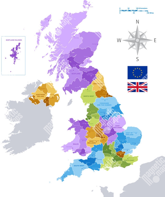 Carte magnétique de la Grande-Bretagne, administrative, COLOREE