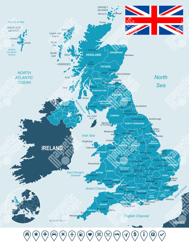 Carte magnétique de la Grande-Bretagne, illustré, bleu