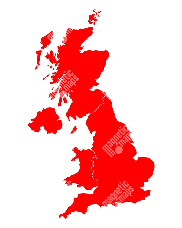 Carte magnétique de la Grande-Bretagne, illustré, rouge
