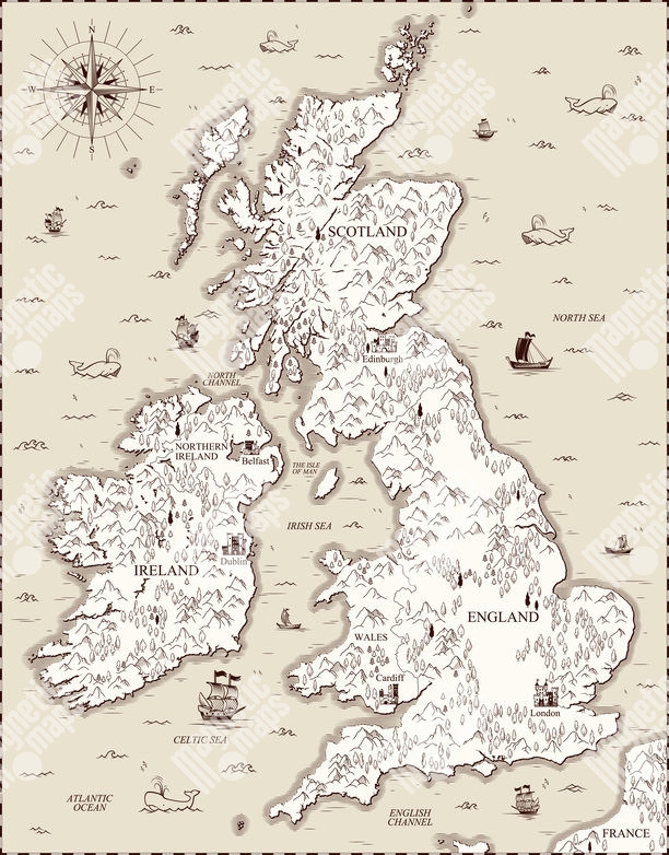 Carte magnétique de la Grande-Bretagne, illustré, vieux