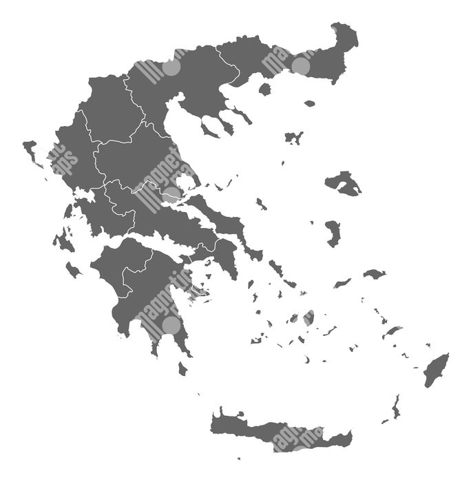 Carte magnétique de la Grèce, administrative, gris
