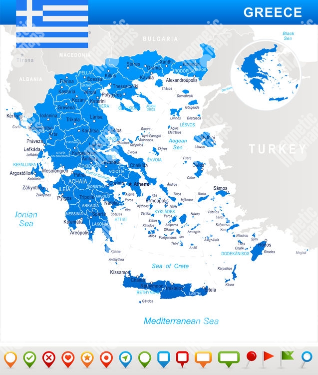 Carte magnétique de la Grèce, illustré, blanc bleu