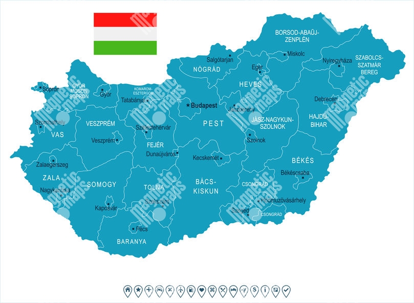 Carte magnétique de la Hongrie, illustré, bleu