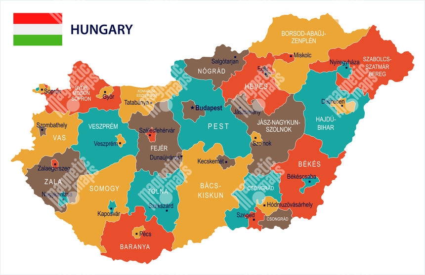 Carte magnétique de la Hongrie, illustré, COLOREE
