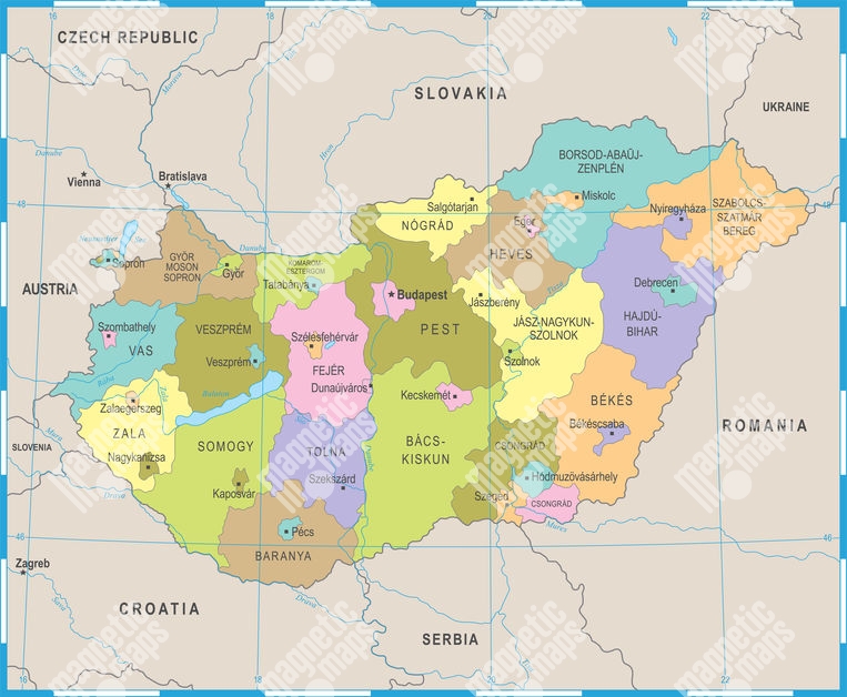 Carte magnétique de la Hongrie, vecteur, COLOREE