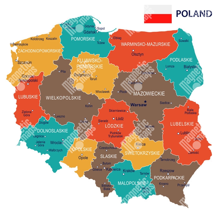 Carte magnétique de la Pologne, illustré, COLOREE