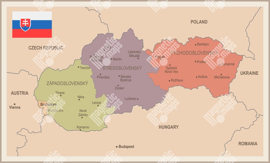 Carte magnétique de la Slovaquie, DETAILLEE, COLOREE