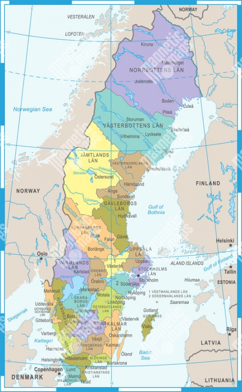Carte magnétique de la Suède, vecteur, COLOREE