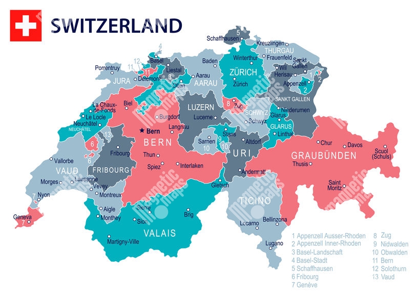 Carte magnétique de la Suisse, illustré, COLOREE