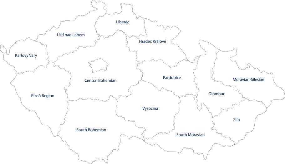 Carte magnétique de la Tchéquie, administrative, blanc