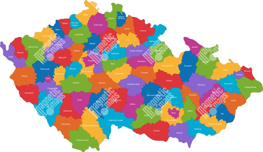 Carte magnétique de la Tchéquie, administrative, COLOREE