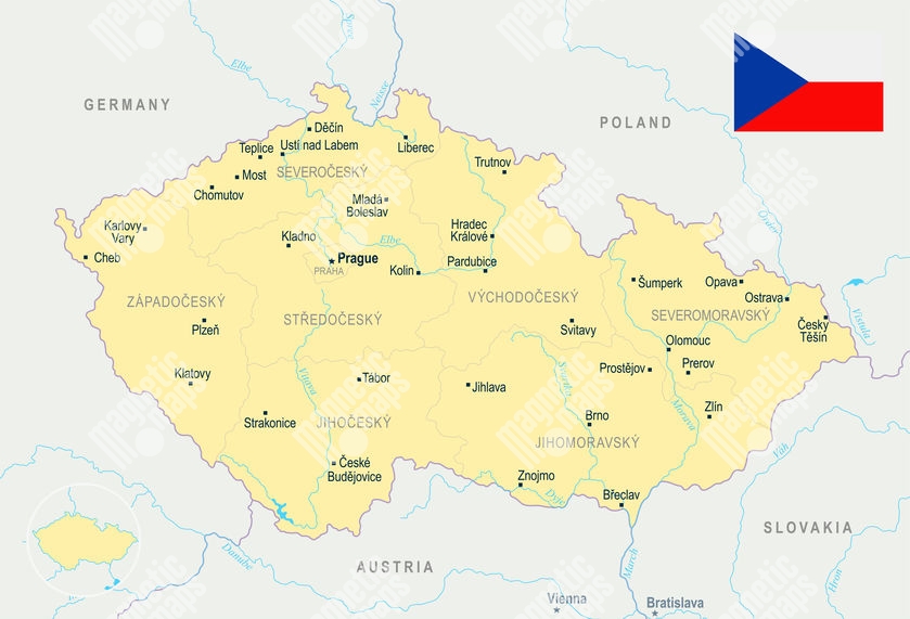 Carte magnétique de la Tchéquie, illustré, COLOREE