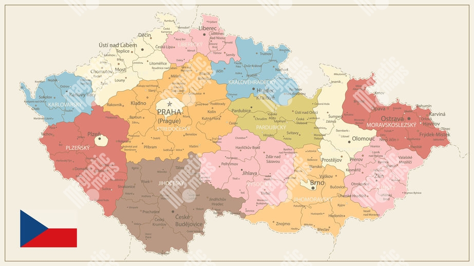 Carte magnétique de la Tchéquie, illustré, détaillée