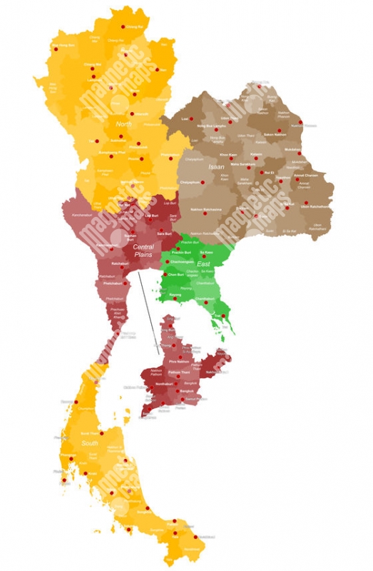 Carte magnétique de la Thaïlande, administrative, COLOREE