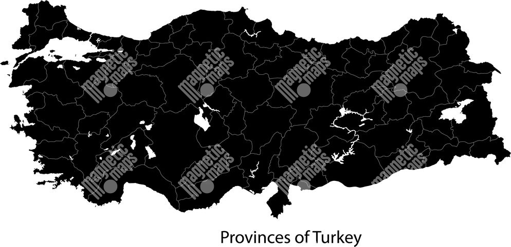 Carte magnétique de la Turquie, illustré, noir