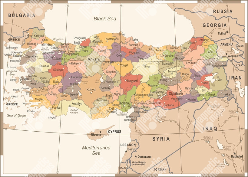 Carte magnétique de la Turquie, vecteur, COLOREE
