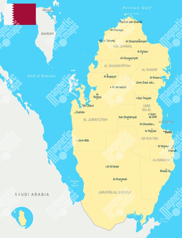 Carte magnétique de Qatar, DETAILLEE, jaune-bleu