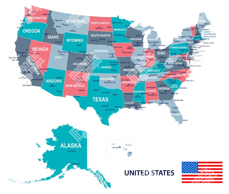 Carte magnétique des États-Unis d'Amérique, illustré, COLOREE
