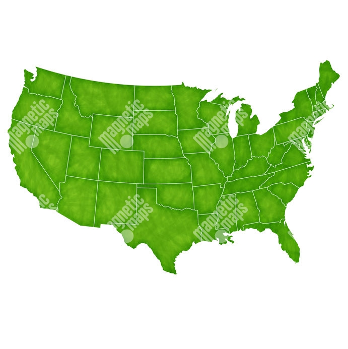 Carte magnétique des États-Unis d'Amérique, illustré, vert