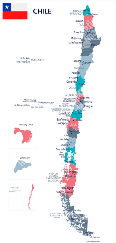 Carte magnétique du Chili, illustré, COLOREE