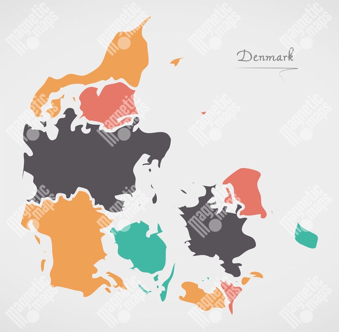 Carte magnétique du Danemark, illustré, COLOREE