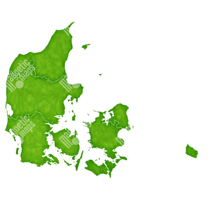 Carte magnétique du Danemark, illustré, vert