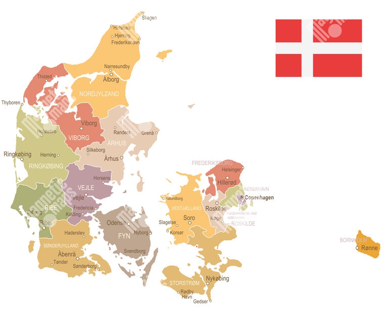 Carte magnétique du Danemark, vintage, COLOREE
