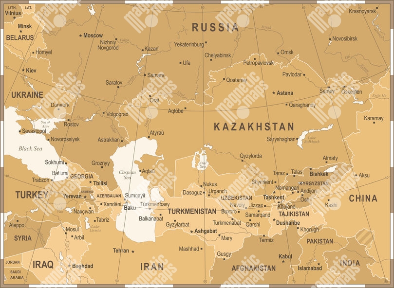 Carte magnétique du Kazakhstan, vintage, brun