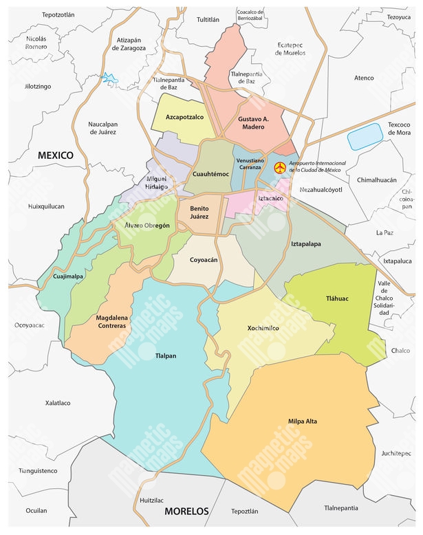 Carte magnétique du Mexique, administrative, COLOREE